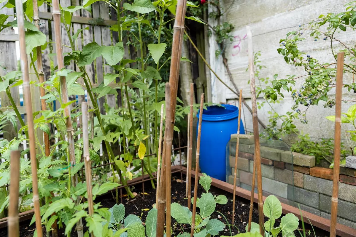 Tip 3: Zet de juiste planten in je tuin. Mijn tuin is vb. te klein voor grote bomen, maar ik heb wel een kerselaar. Geen sierkerselaar, want die geeft geen kersen. Ik heb hier ook een beukje staan dat ik regelmatig bijsnoei. Van het hout maak ik zelf lepels. Mijn vriendin heeft dan weer planten gezet waar ze natuurlijke verven van kan maken.